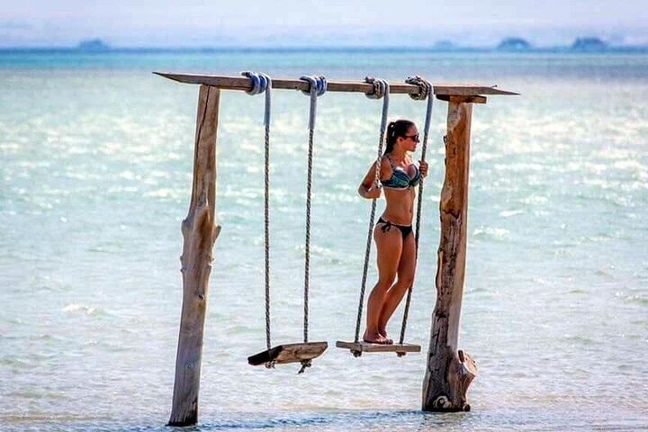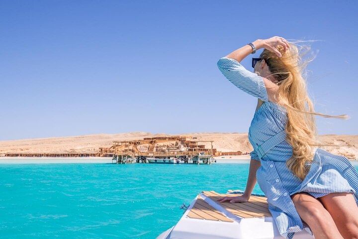 Next, arrive at the serene shores of Orange Bay Island, often referred to as the “Maldives of Egypt.” Here, you’ll have time to unwind on the powdery white sands, swim in crystal-clear waters, or simply relax under a beach umbrella.