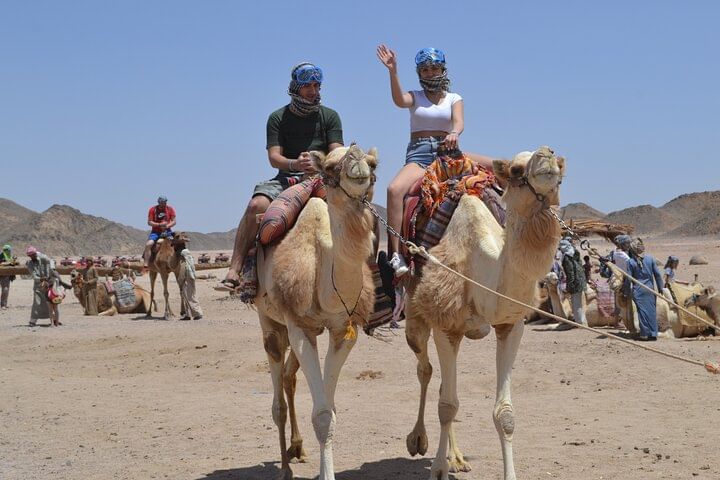 Give yourself a spectacular experience in Hurghada's desert between the mountains on its gorgeous multicolored sand dunes, visiting the Bedouin village, riding an ATV quad bike, having a camel ride with a short tour in the village, and savoring a Bedouin meal with a Bedouin Egyptian oriental performance!