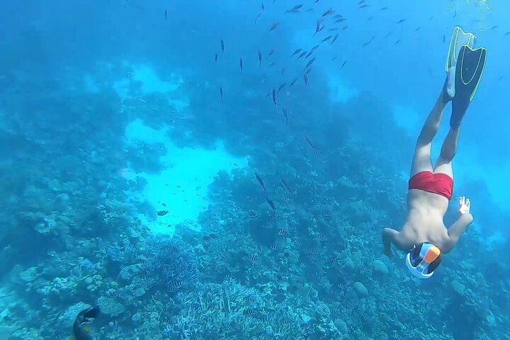 Discover Underwater Wonders at Sharm El Naga: Enjoy a full day exploring this breathtaking reef near Hurghada celebrated for its spectacular coral and rich marine biodiversity. This all-inclusive journey allows you to dive into clear waters and explore vibrant underwater worlds full of exotic fish. After a morning of snorkeling, relax with a delicious lunch served right on the boat, combining adventure with relaxation. Whether you’re a seasoned snorkeler or a newcomer, this trip offers an unforgettable glimpse into the Red Sea’s natural beauty.
