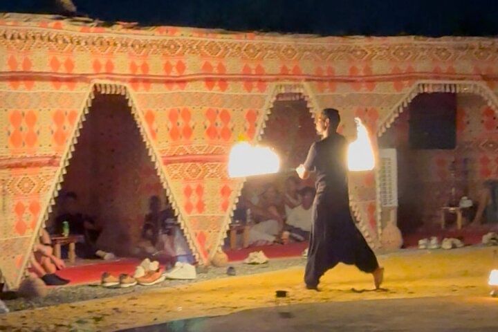 Escape the ordinary and dive into an evening of rich culture, spectacular shows, and artistic wonders in the heart of the desert. This one-of-a-kind tour blends a traditional Bedouin experience with exciting live entertainment — including the mesmerizing Tanoura dance and a jaw-dropping fire show — plus a visit to Sand City Hurghada, the region’s only open-air sand sculpture museum.