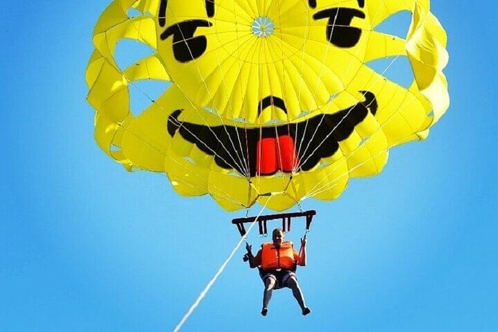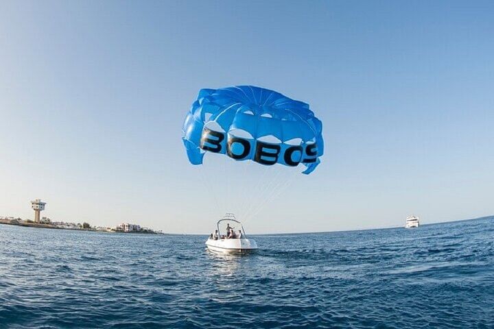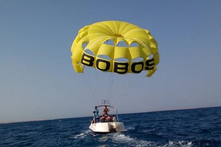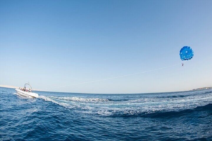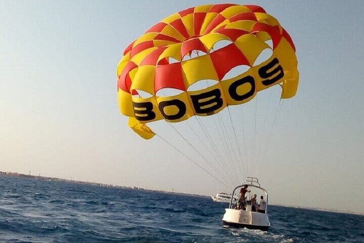 Experience the thrill of a lifetime with our Parasailing Adventure on Marine Try Fly in Sharm El Sheikh! Soar high above the stunning coastline and take in breathtaking views of the Red Sea as you glide effortlessly through the sky.