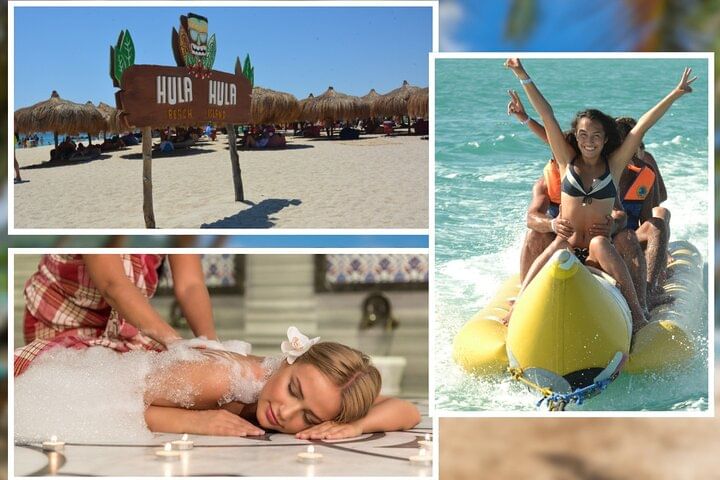 Treat yourself to a day of elegance and adventure on our Hula Hula Island tour. Begin with a traditional Turkish bath, where you'll enjoy a revitalizing steam session, invigorating exfoliation, and a soothing massage—setting the tone for a day of bliss and rejuvenation. Then, immerse yourself in a world of excitement with a variety of thrilling water sports on the island’s sparkling waters. Whether you’re racing across waves on a jet ski, effortlessly gliding on a paddleboard, or exploring other exhilarating activities, Hula Hula Island offers endless aquatic fun. Conclude your day by savoring a delicious lunch against the backdrop of the island’s breathtaking scenery. With an array of fresh, flavorful dishes, this meal will be a memorable highlight of your experience on our Hula Hula Island with Water sports, Lunch &Turkish Bath- Hurghada