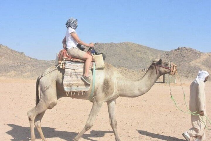 Uncover the magic of the desert with our captivating adventure in Hurghada. Your evening begins with an exhilarating jeep safari through awe-inspiring desert landscapes, leading you to an ideal stargazing spot. After your thrilling ride, indulge in a traditional Bedouin dinner beneath the starry sky, savoring authentic cuisine in the peaceful desert ambiance. The evening continues with a tranquil camel ride across the golden sands, adding a unique touch to your adventure. experience perfectly blends excitement, relaxation, and cultural immersion, ensuring an unforgettable desert journey.