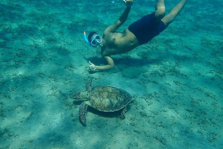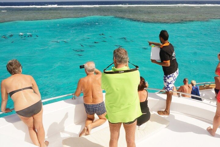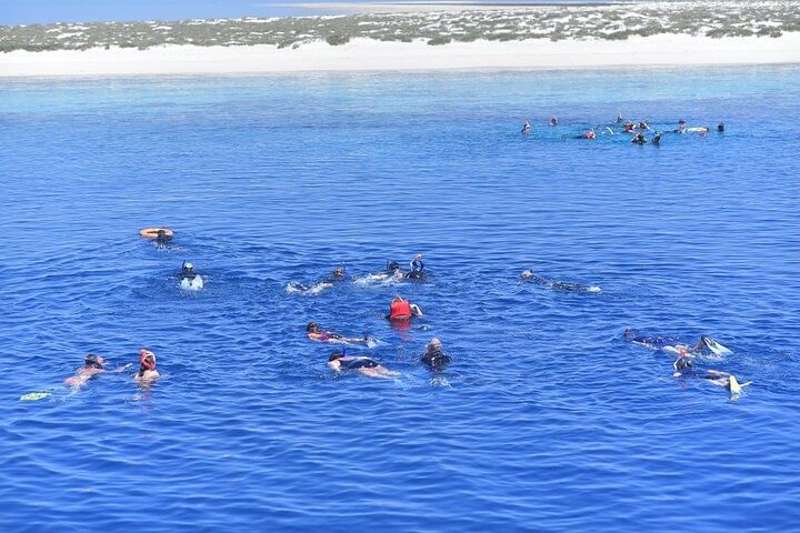 Discover the underwater beauty of Marsa Alam on a relaxing snorkeling trip that combines vibrant marine exploration with a taste of local cuisine. Begin your journey with a peaceful boat ride across the Red Sea, heading toward some of the area's most renowned snorkeling sites, famous for their clear waters and abundant sea life.