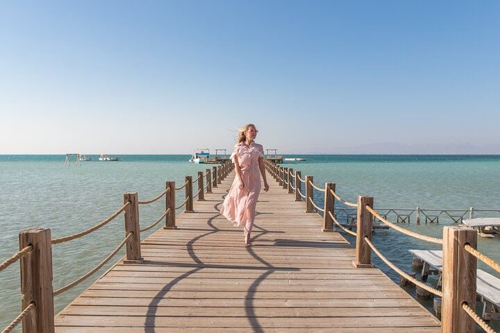Discover the charm of Orange Bay Island on a full-day boat tour departing from Hurghada . Enjoy snorkeling in a colorful underwater world, relax on the island’s pristine sandy shores, and treat yourself to a tasty lunch onboard. The package includes hotel pickup and drop-off, snorkeling equipment, and various water activities.