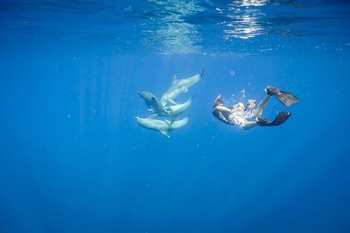 Experience an unforgettable 4-hour dolphin swim adventure in Hurghada! Enjoy a semi-private speedboat tour with convenient transfers. Get up close with dolphins in their natural habitat for a truly memorable experience.