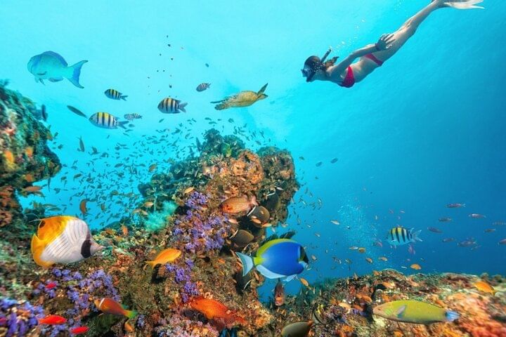 Your adventure starts with a scenic boat ride, taking around two to two and a half hours to reach the reef. Upon arrival, you'll begin your first guided snorkeling session in the crystal-clear waters of this remarkable site, often visited by pods of dolphins.