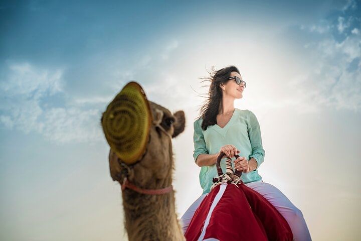 Next, take a step back in time with a peaceful camel ride. Let the gentle rhythm of this iconic desert travel guide you across golden sands, offering a tranquil counterpoint to your high-speed start.