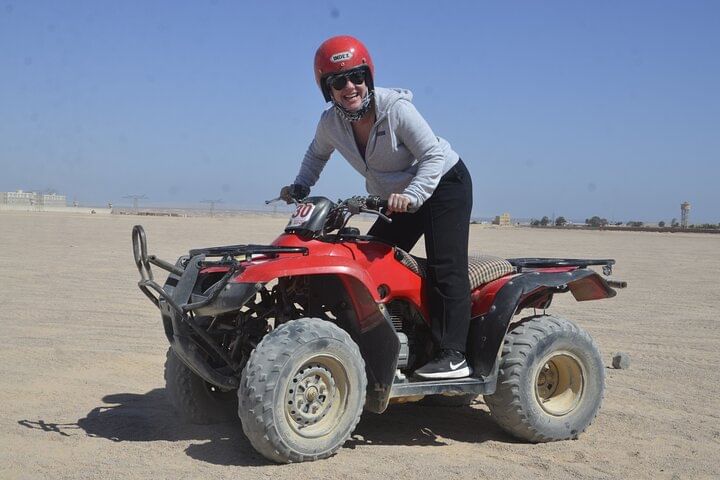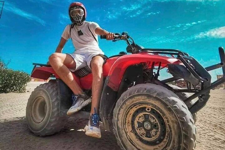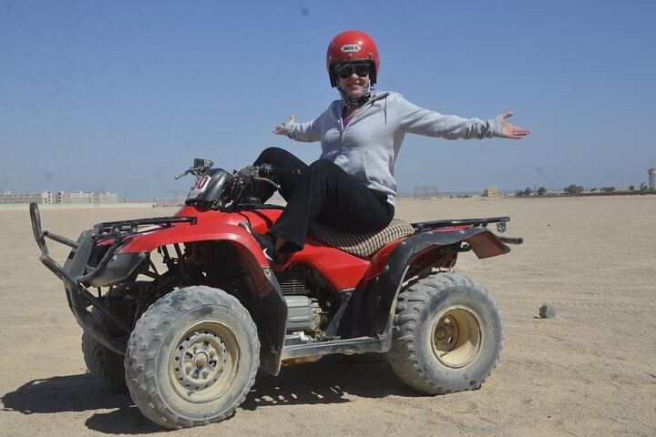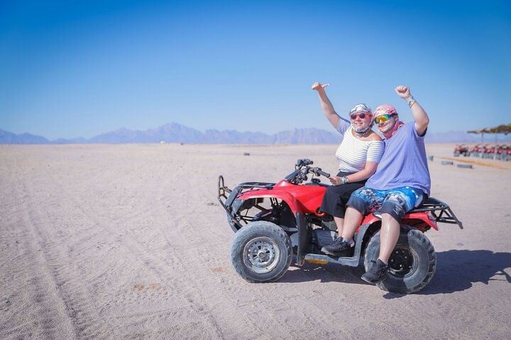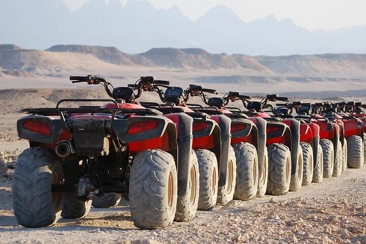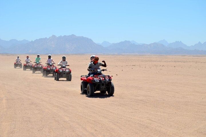 Explore Hurghada's desert for 7 Hours by Driving an ATV bike and a Spider Car, Enjoying a thrilling Jeep ride between the mountains of the desert, a camel ride through a Bedouin village