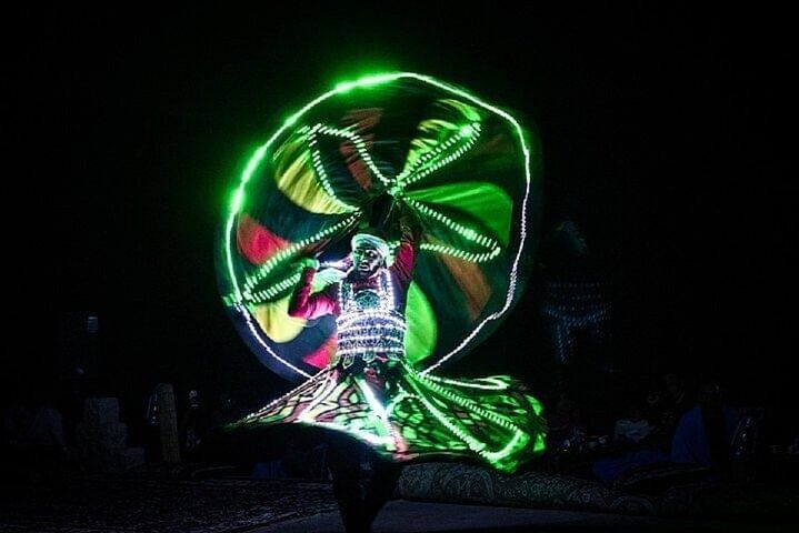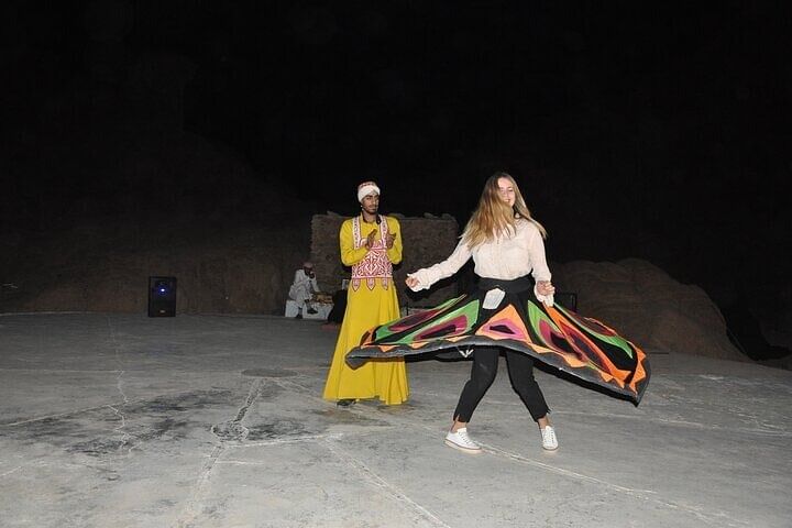 As evening falls, settle in for a delicious dinner served under the stars. The night continues with a vibrant Bedouin show, complete with traditional music and dancing — a memorable way to end a day of exploration and cultural immersion.