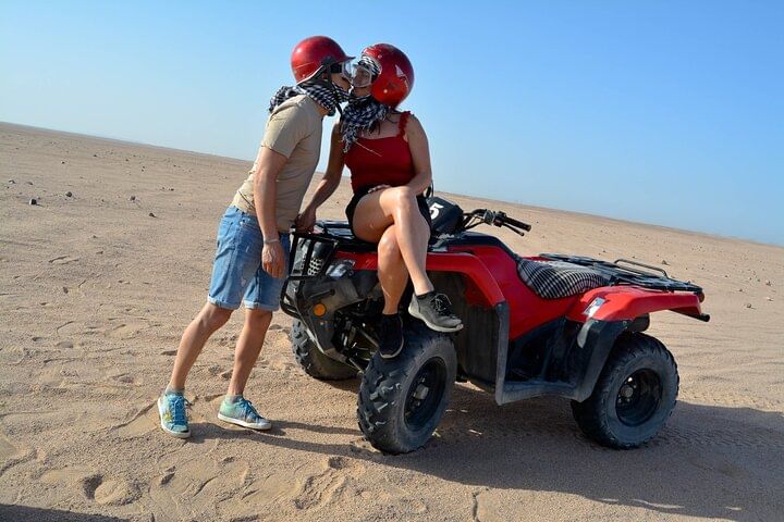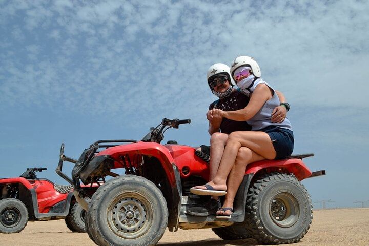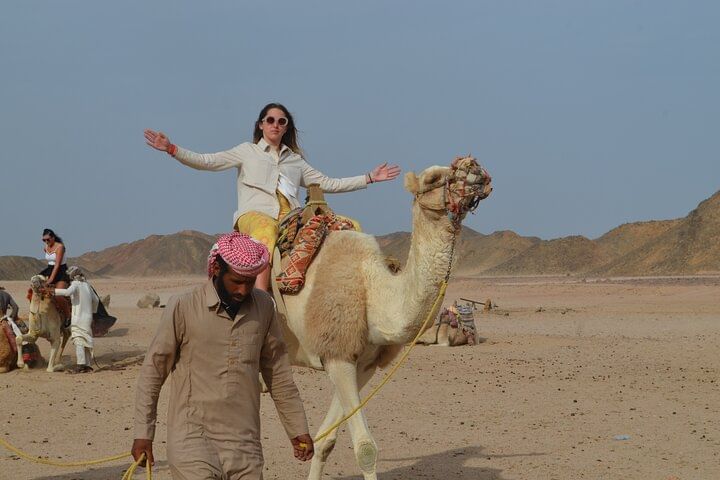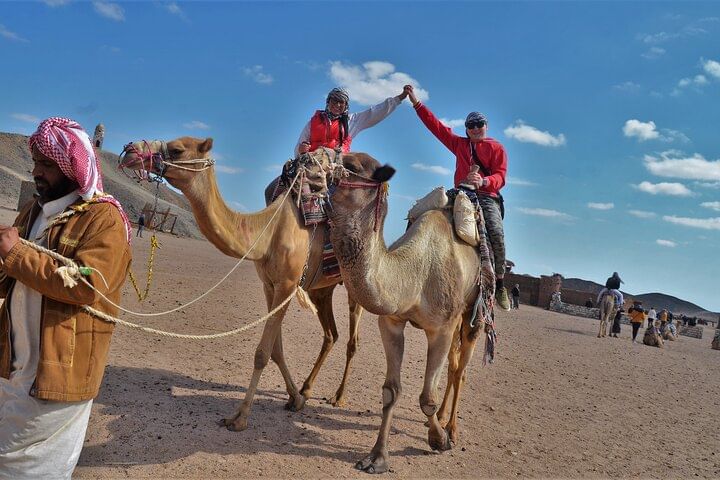 Start your journey with an action-packed quad bike ride, followed by a peaceful camel trek through the golden sands. After the thrill, shift gears and visit a nearby Bedouin village, where you’ll meet locals and gain insight into their daily customs and way of life.