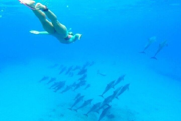 Experience one of the most exciting opportunities to encounter dolphins in their natural environment on this unforgettable snorkeling trip.