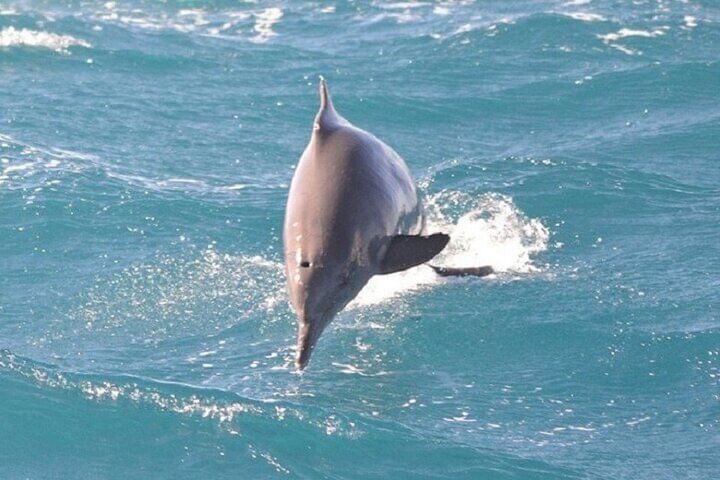Dolphins can often be seen swimming at various depths, from shallow waters down to 40 meters. Your adventure includes all necessary snorkeling gear, a freshly prepared lunch on board, and refreshing beverages.
